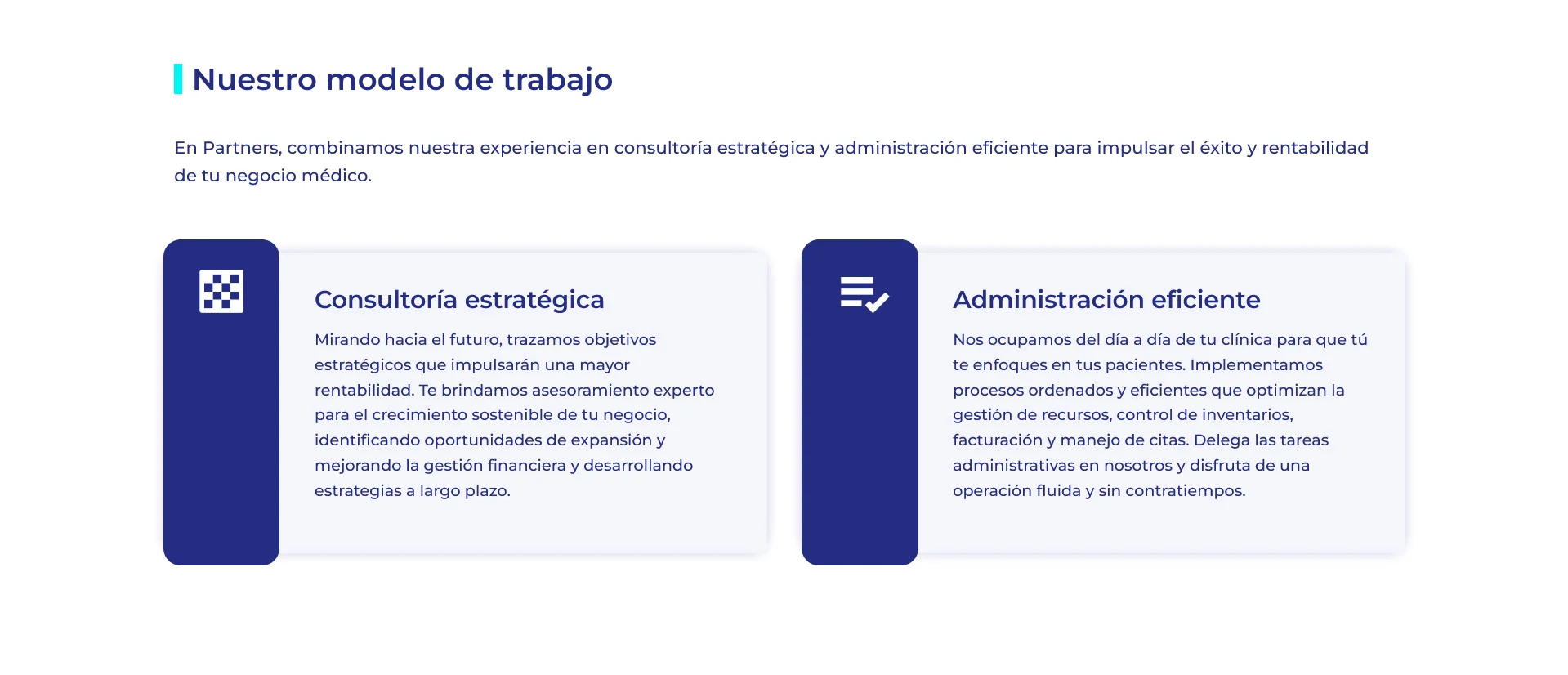 Creamos el sitio web de PartnersHM, una consultora dedicada a la salud mental organizacional, con servicios de psicoeducación, intervenciones clínicas y asesorías especializadas para instituciones y empresas. El diseño fue enfocado en comunicar de forma clara su propuesta de valor, destacando su enfoque humano, profesional y personalizado. El sitio facilita la comprensión de sus servicios y permite a los usuarios encontrar fácilmente información relevante, con una estructura moderna, adaptable a dispositivos móviles y orientada a generar contacto directo con potenciales clientes.
